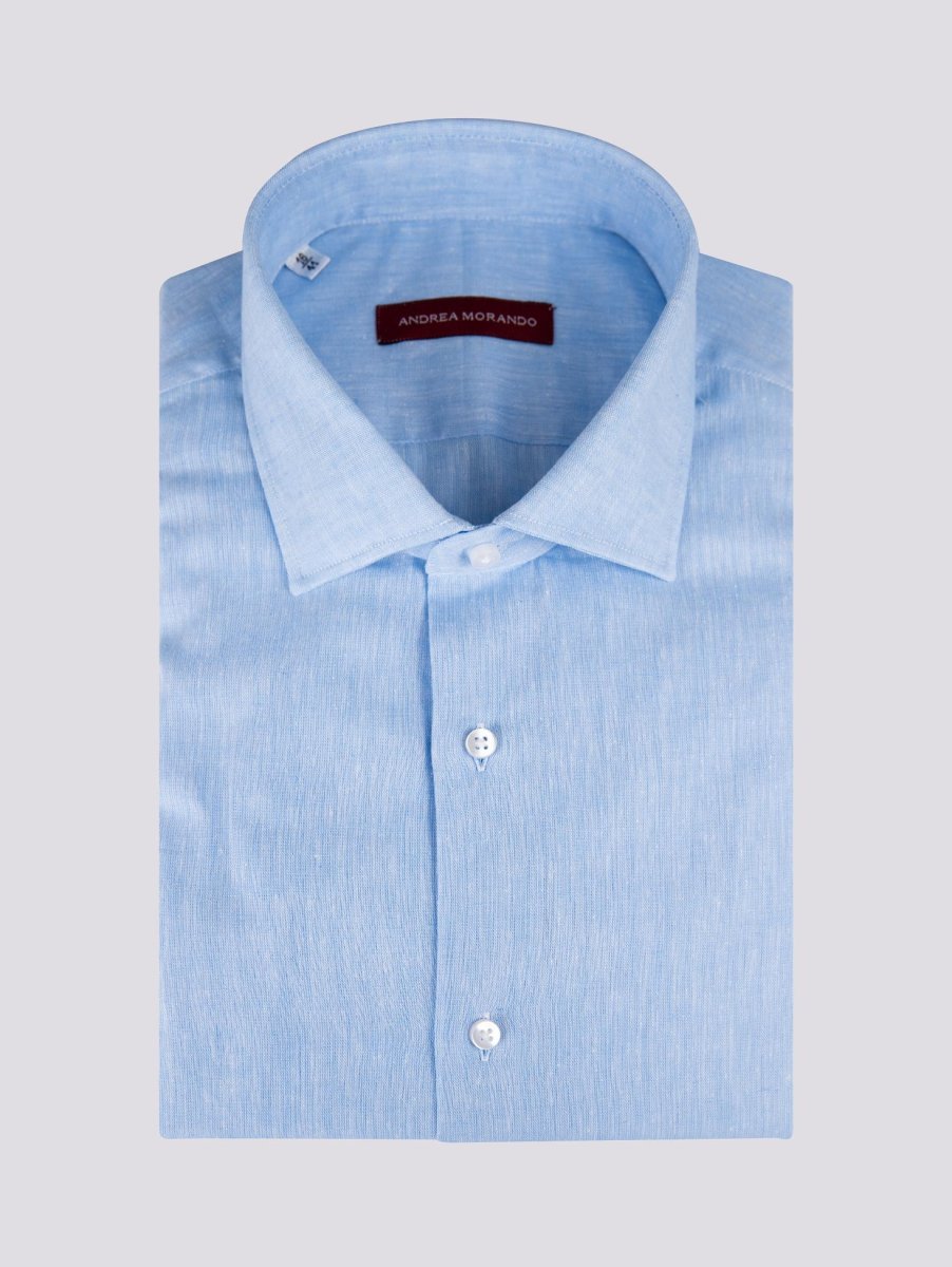 CAMICIA CLASSICA IN LINO AZZURRO TINTO FILO