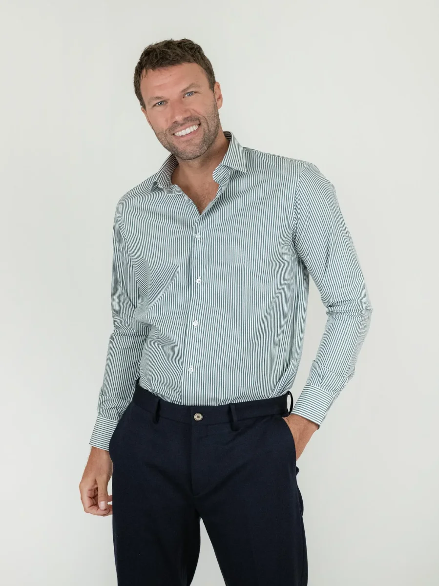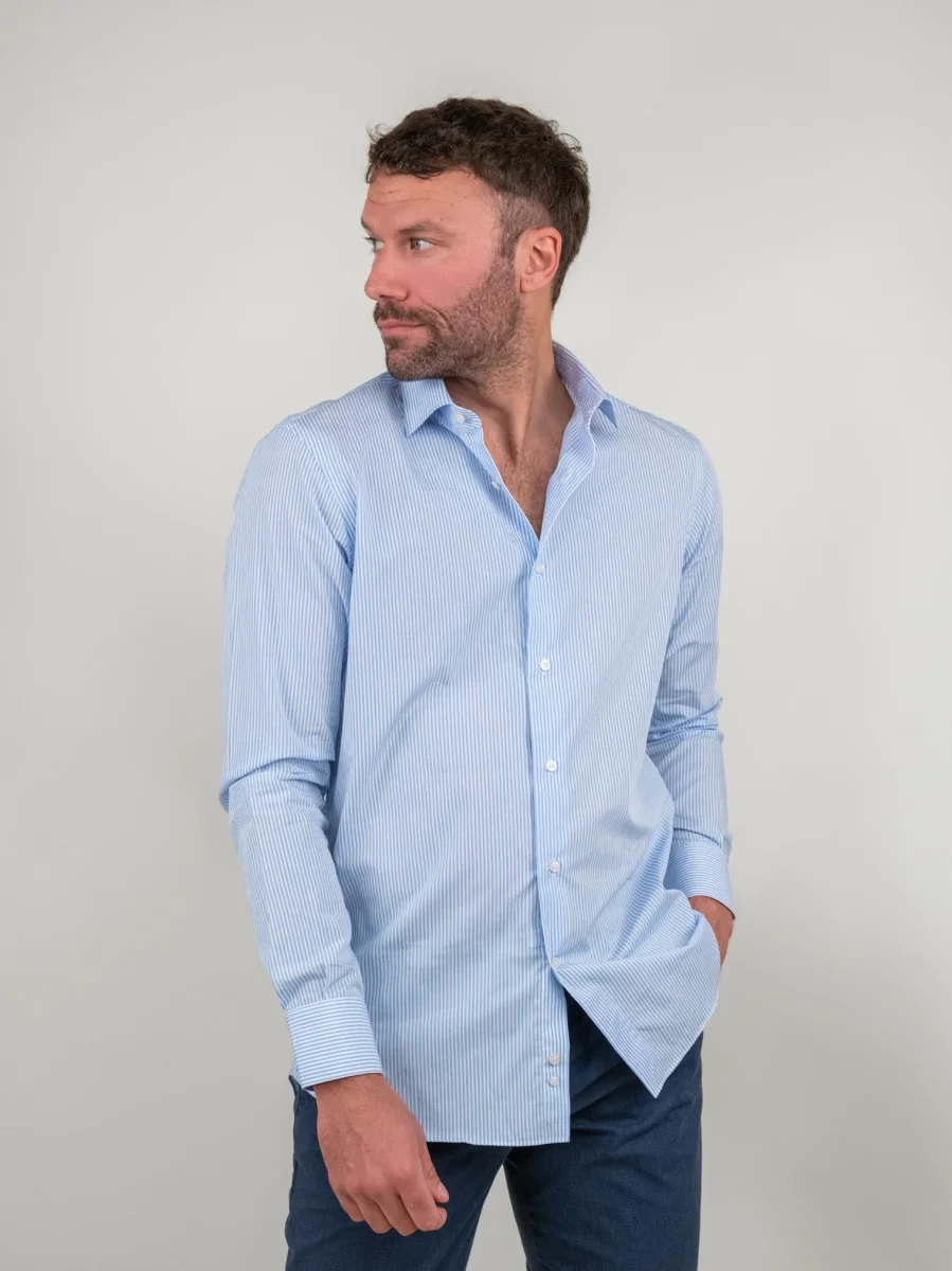 CAMICIA REGULAR A RIGHE AZZURRE E BIANCHE