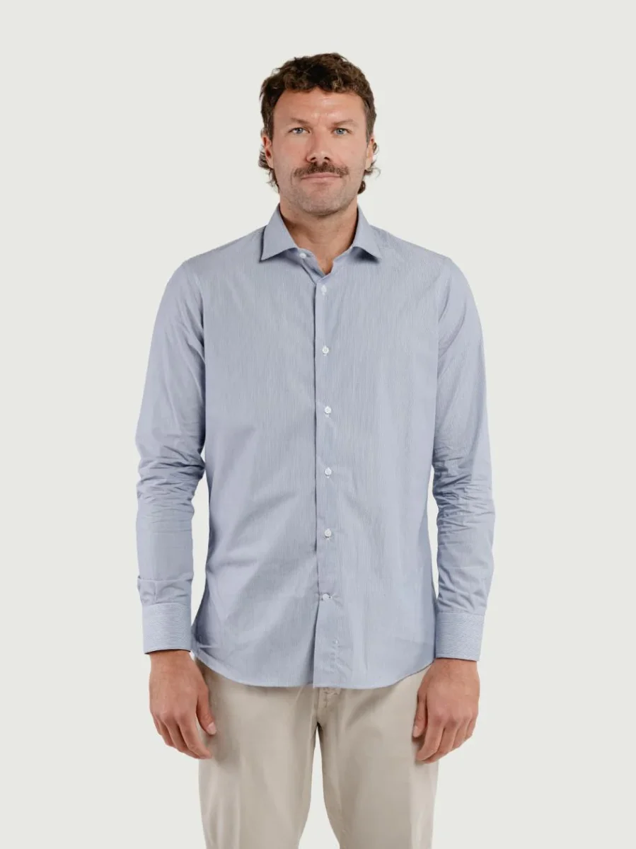 CAMICIA IN TWILL DI COTONE CON FANTASIA MICRORIGA BLU