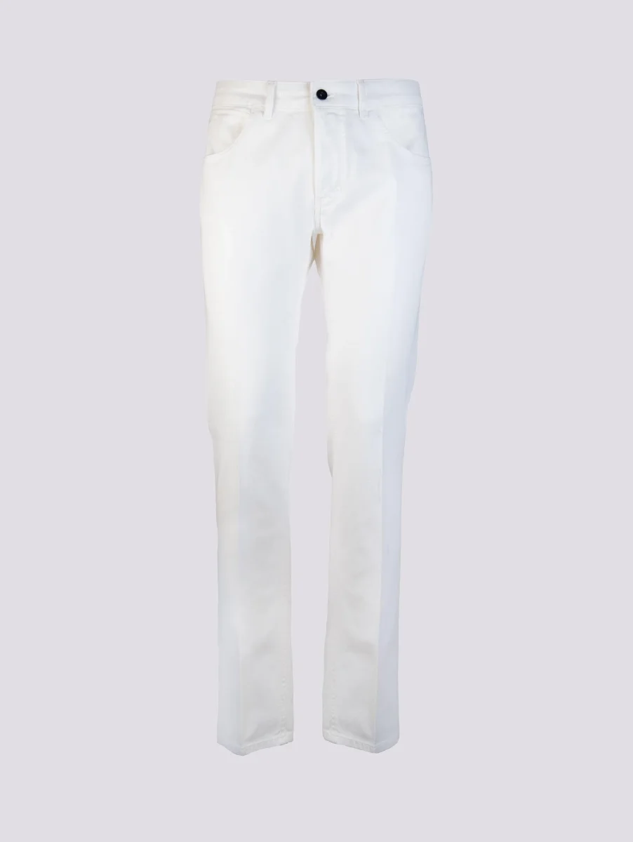 PANTALONE IN COTONE A RIGHINE BIANCHE E AZZURRE