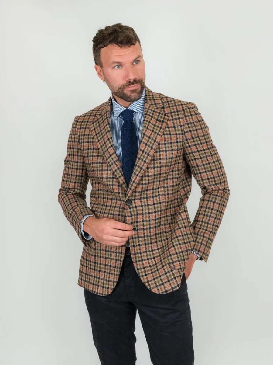 BLAZER FANTASIA CHECK IN LANA VERGINE COLOR TABACCO