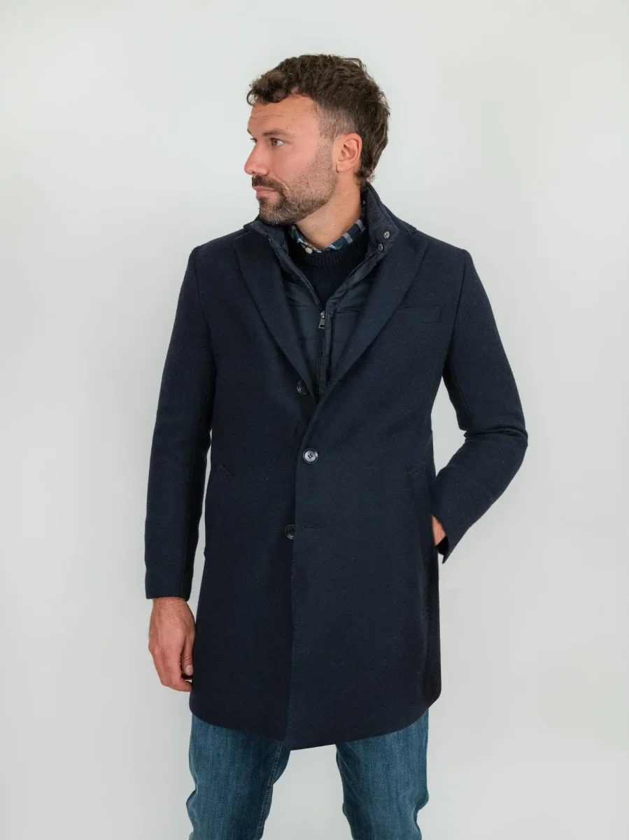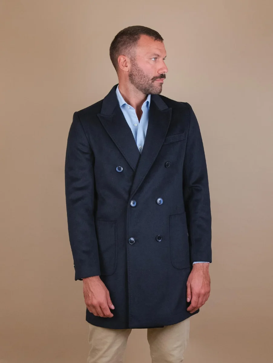 CAPPOTTO DOPPIOPETTO IN MISTO LANA BLU