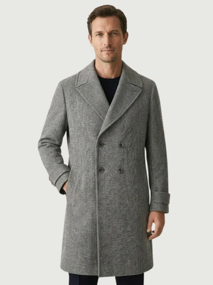 CAPPOTTO IN LANA DOPPIOPETTO MOTIVO SPIGA MORO