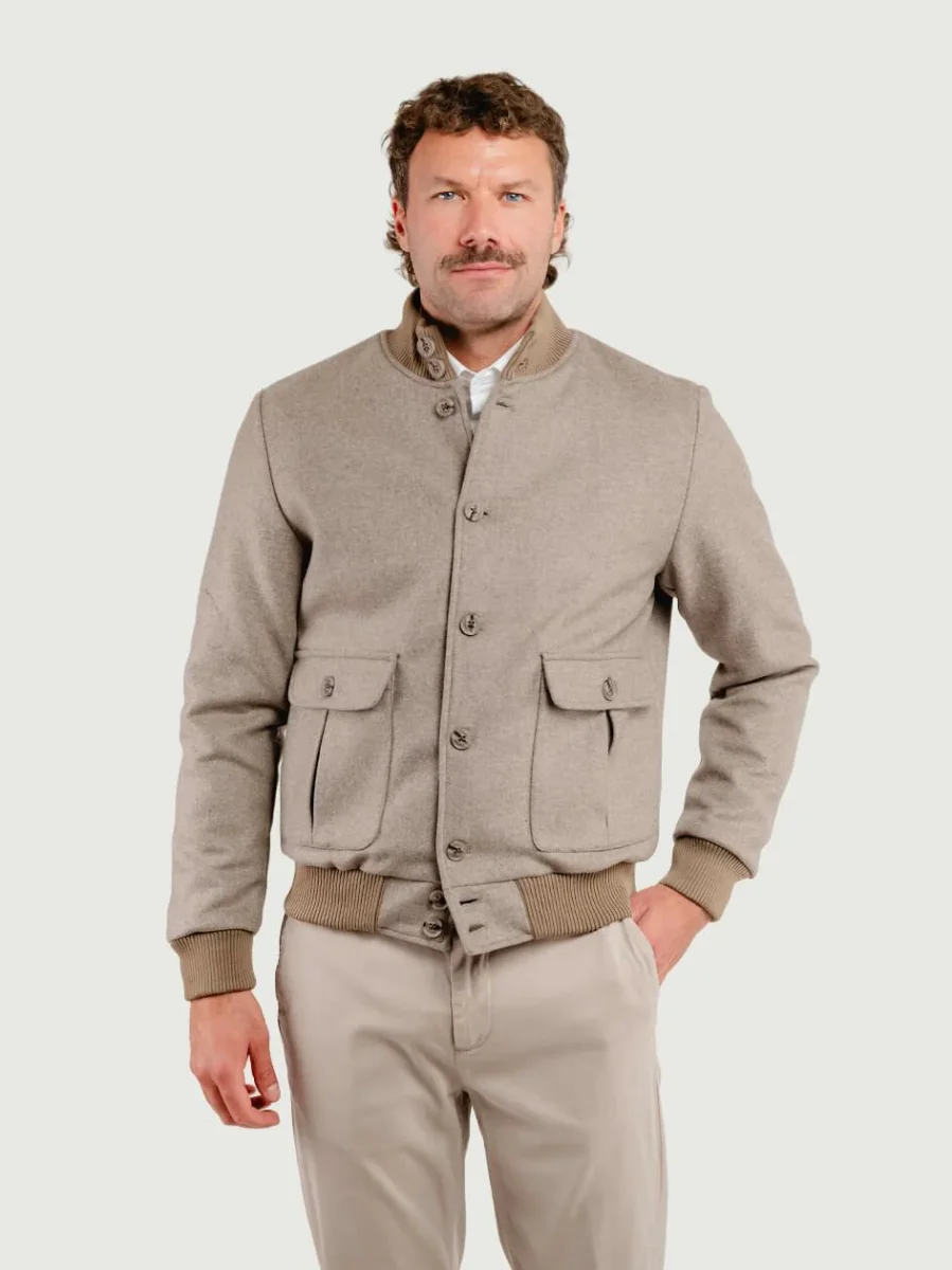 CAPPOTTO IN LANA DOPPIOPETTO MOTIVO SPIGA BEIGE