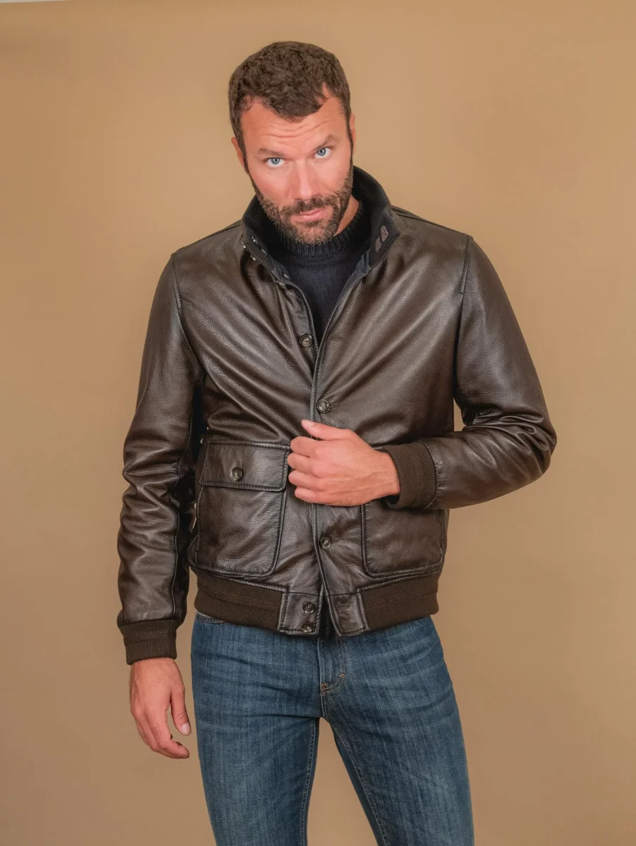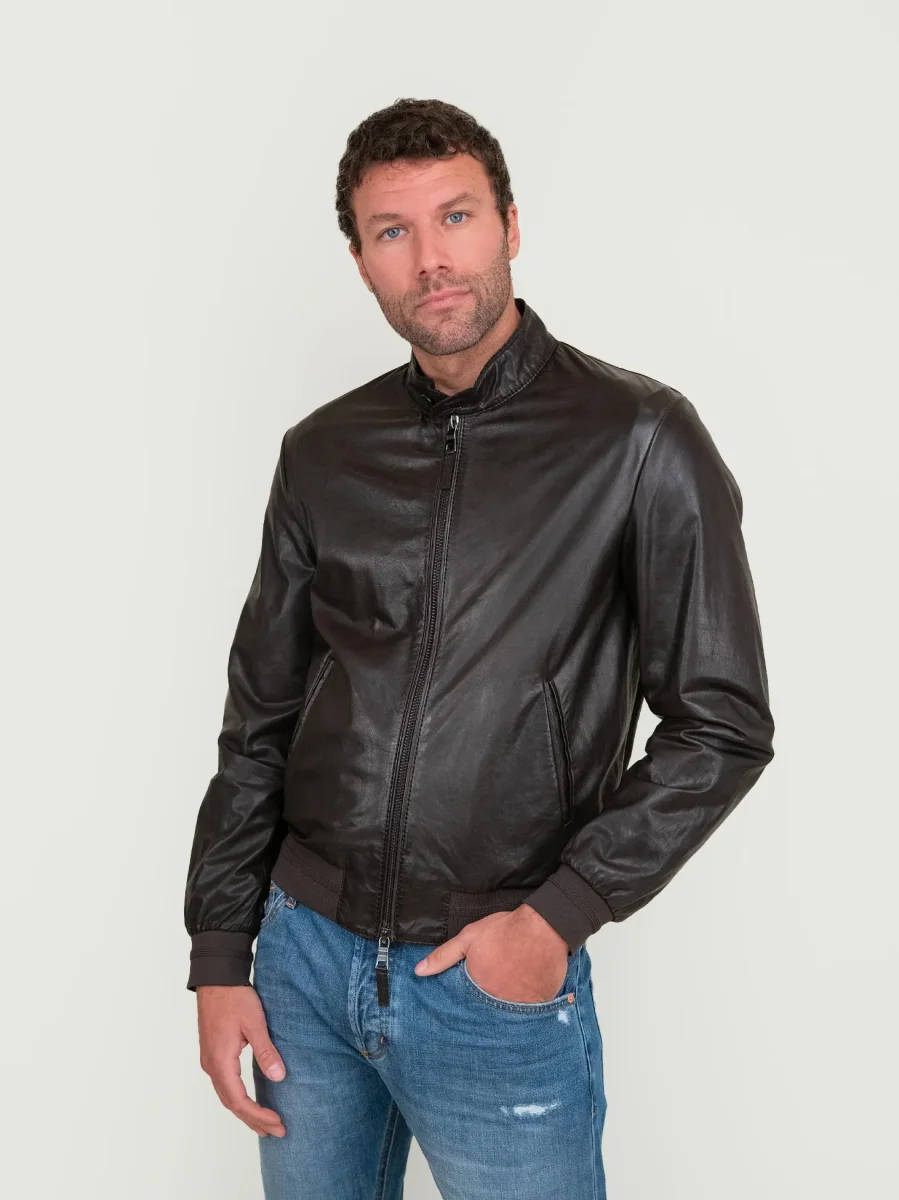 BOMBER IN PELLE MARRONE SCURO