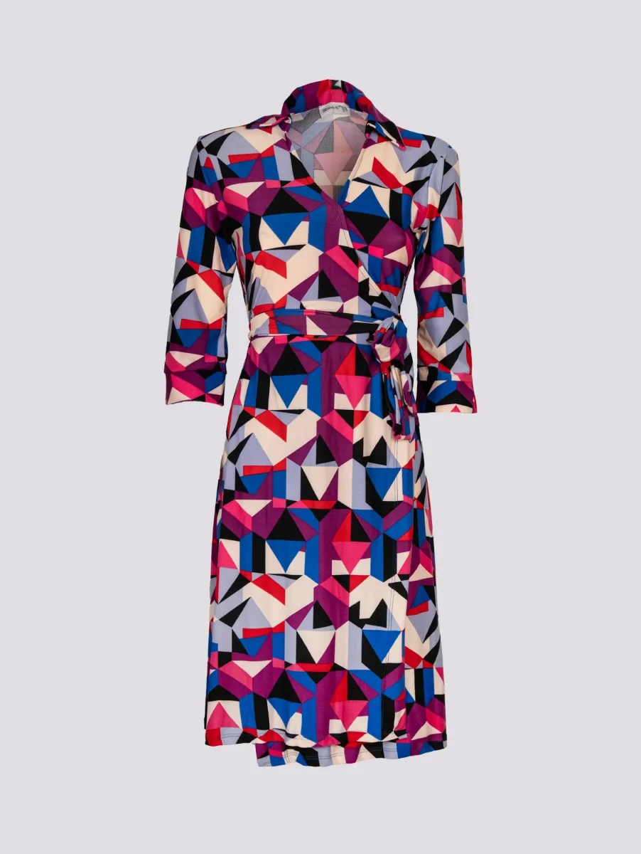 Abito kimono in fantasia geometrica viola multicolor