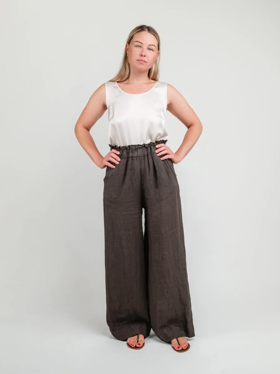 PANTALONE A PALAZZO IN LINO MARRONE