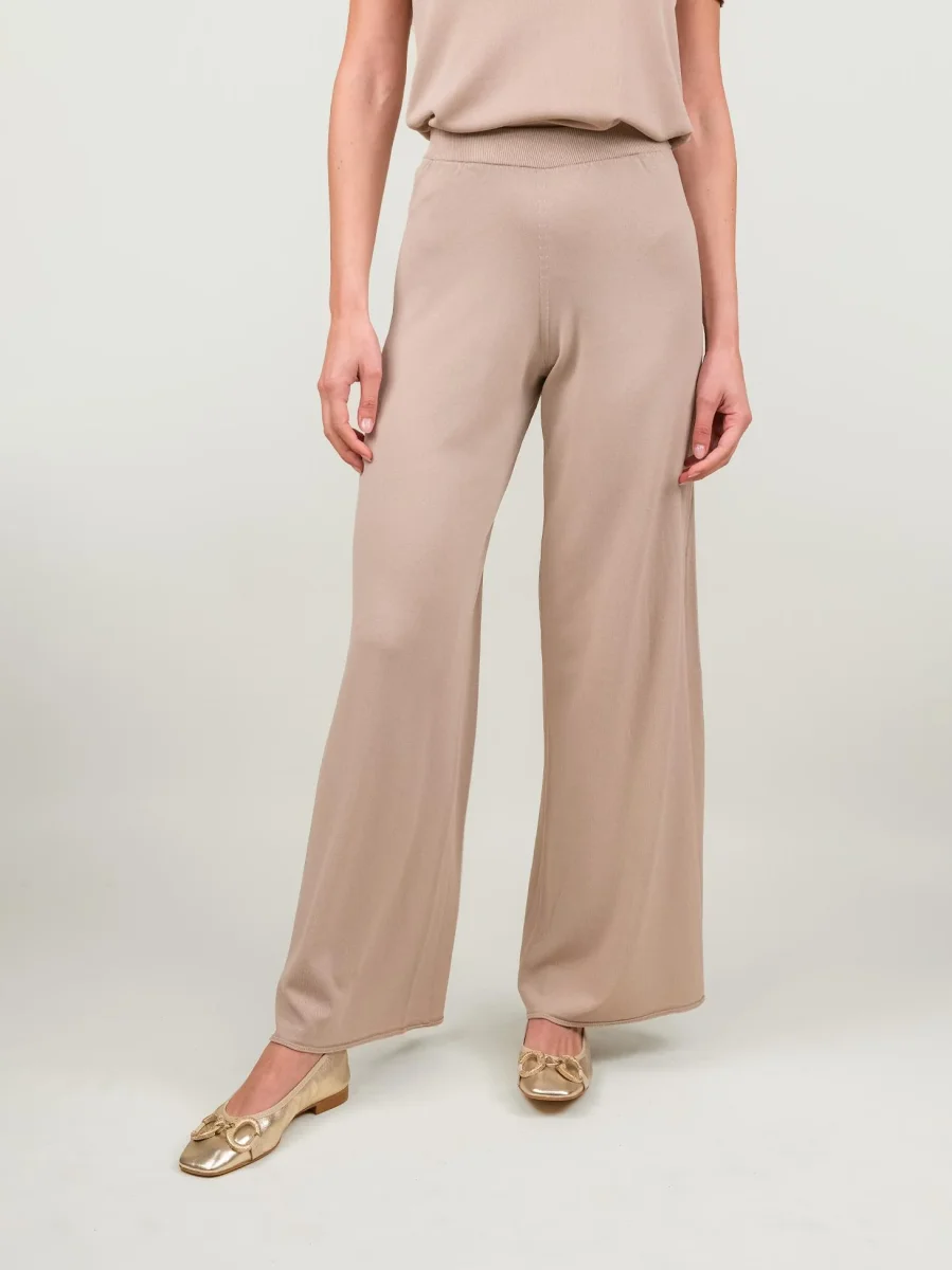 PANTALONE A PALAZZO IN MAGLIA BEIGE