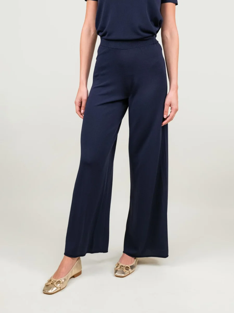 PANTALONE A PALAZZO IN MAGLIA BLU