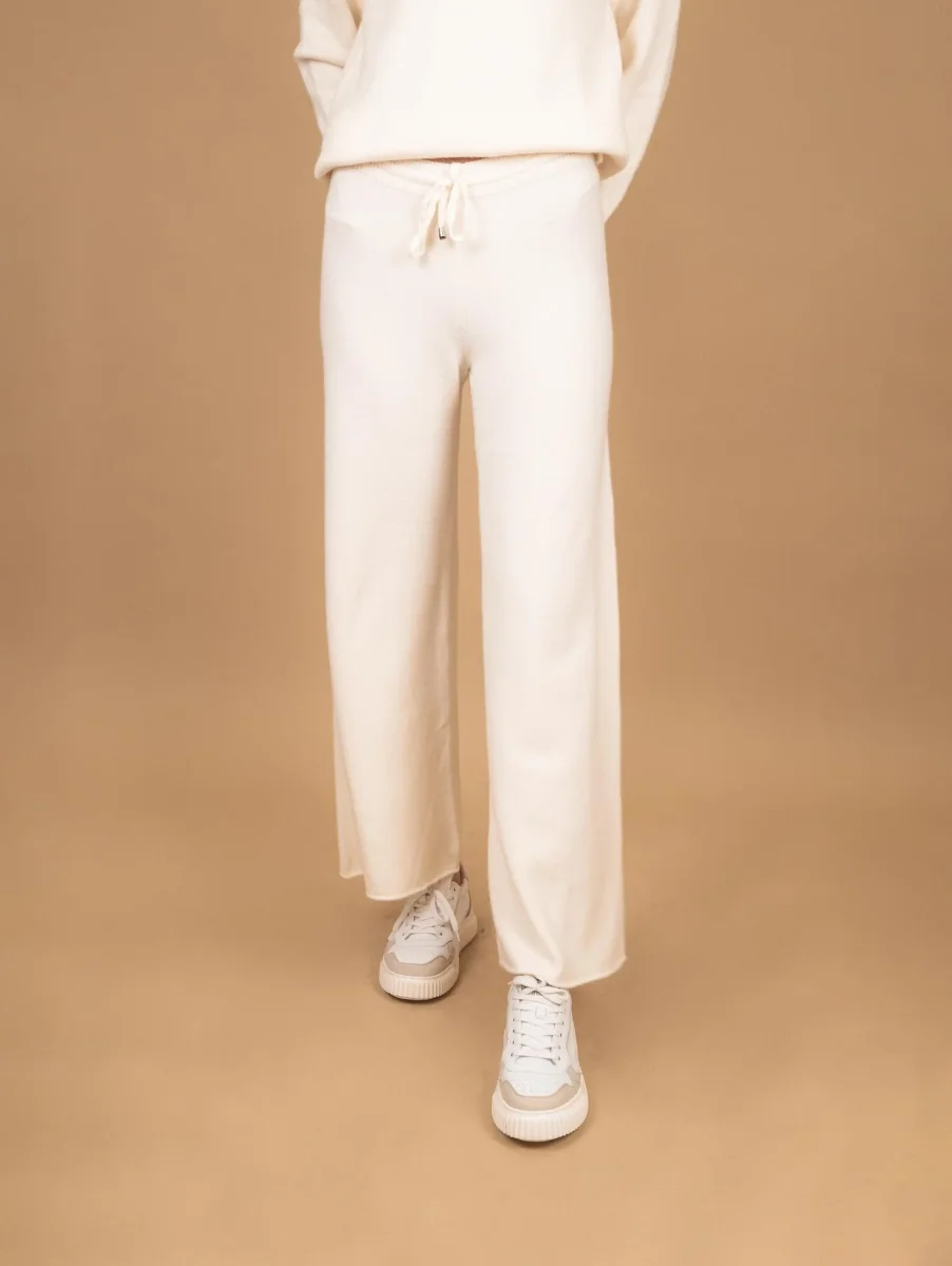 Pantalone a palazzo in maglia panna