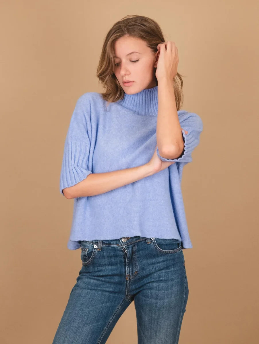 LUPETTO IN MAGLIA OVER CON MANICA TRE QUARTI AZZURRO