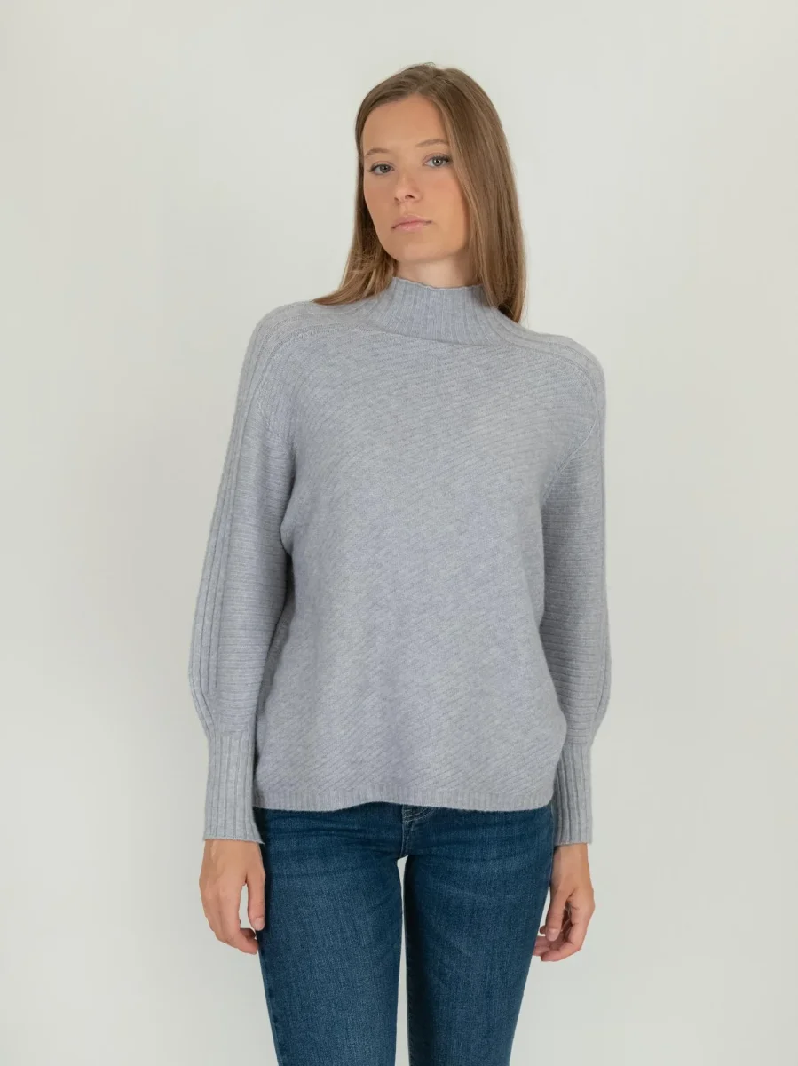 LUPETTO IN MAGLIA GRIGIO PERLA CON MANICHE A SBUFFO