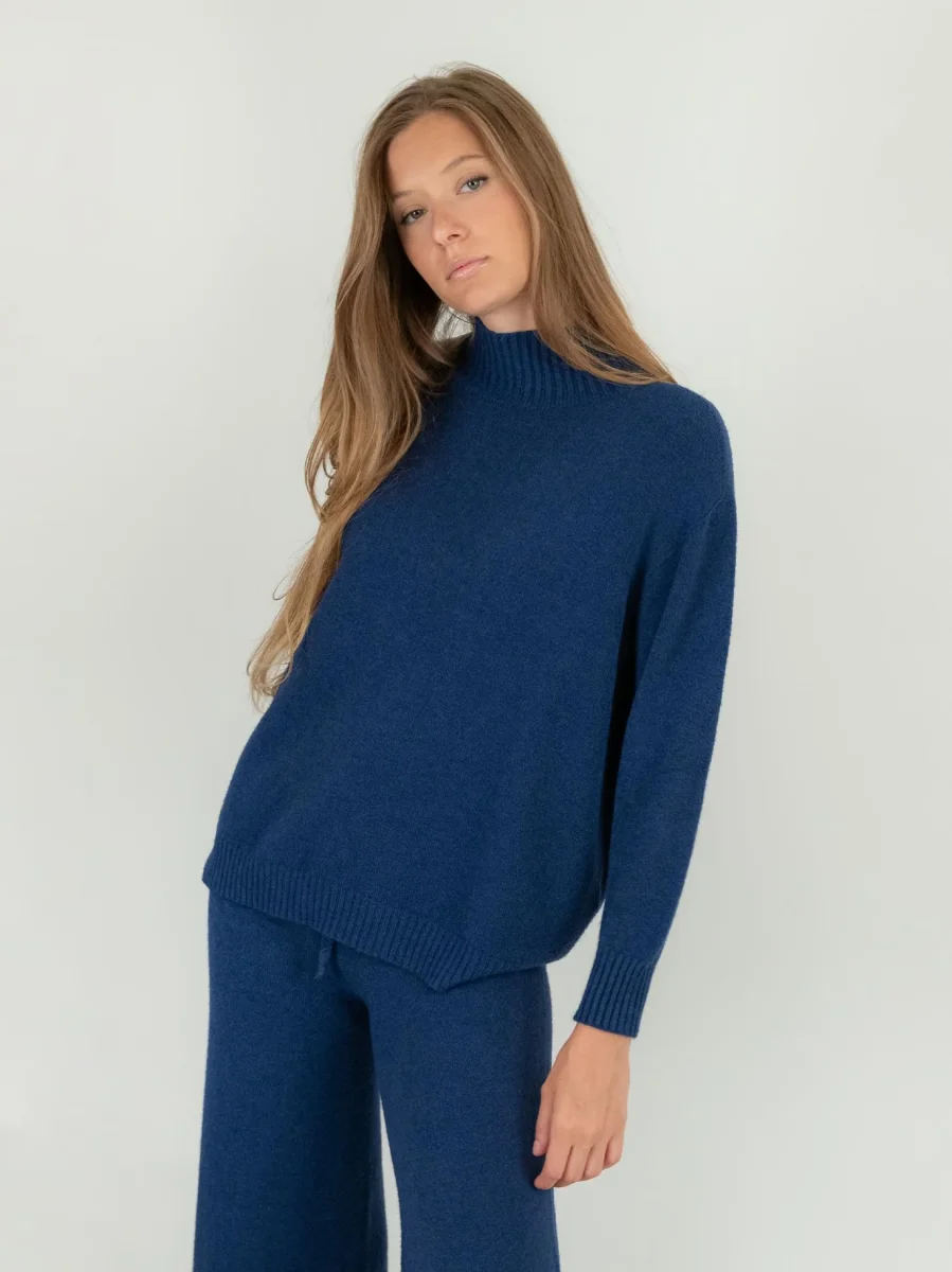 MAGLIA ABITO CON TASCHE E SCOLLO A BARCHETTA BLU