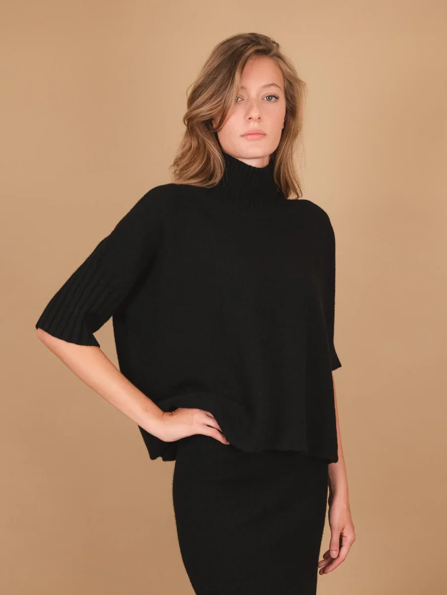 LUPETTO IN MAGLIA OVER CON MAINICA TRE QUARTI NERO