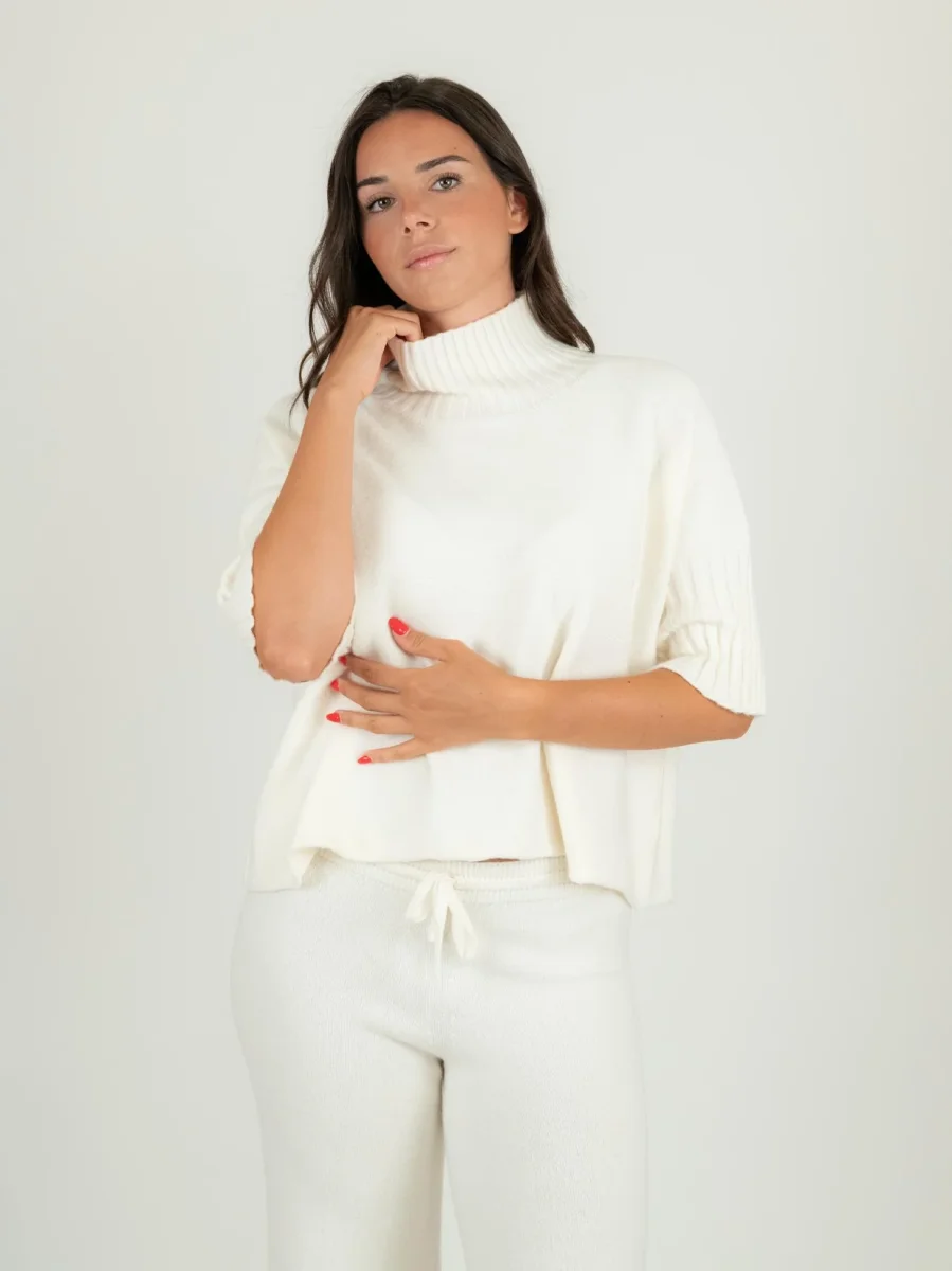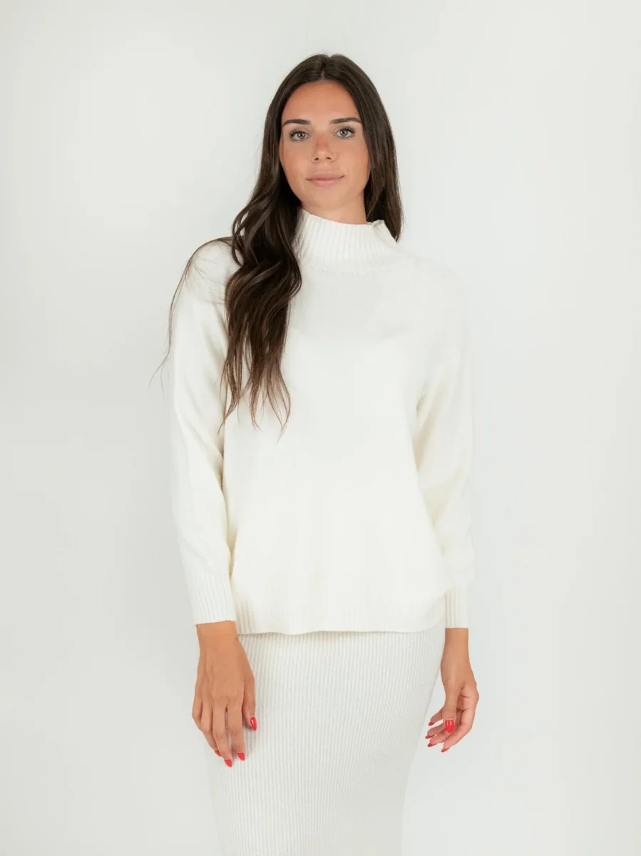 MAGLIA ABITO CON COLLO ALTO PANNA