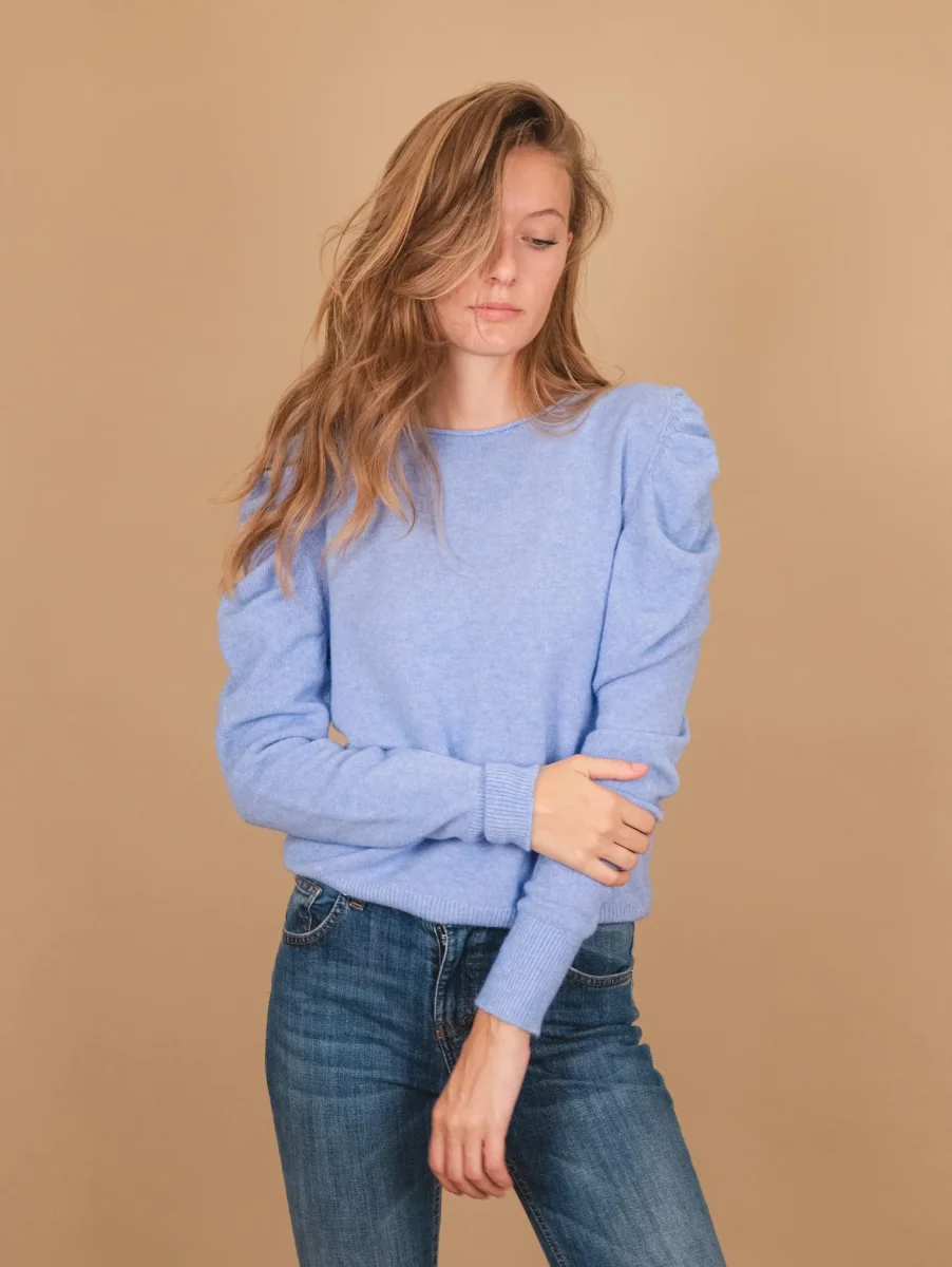 MAGLIA GIROCOLLO CON MANICHE A PALLONCINO AZZURRA