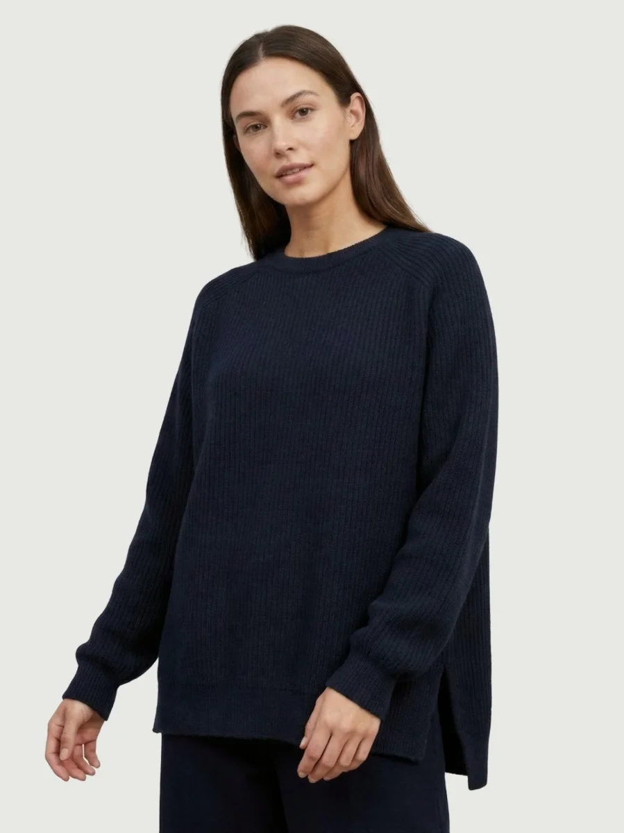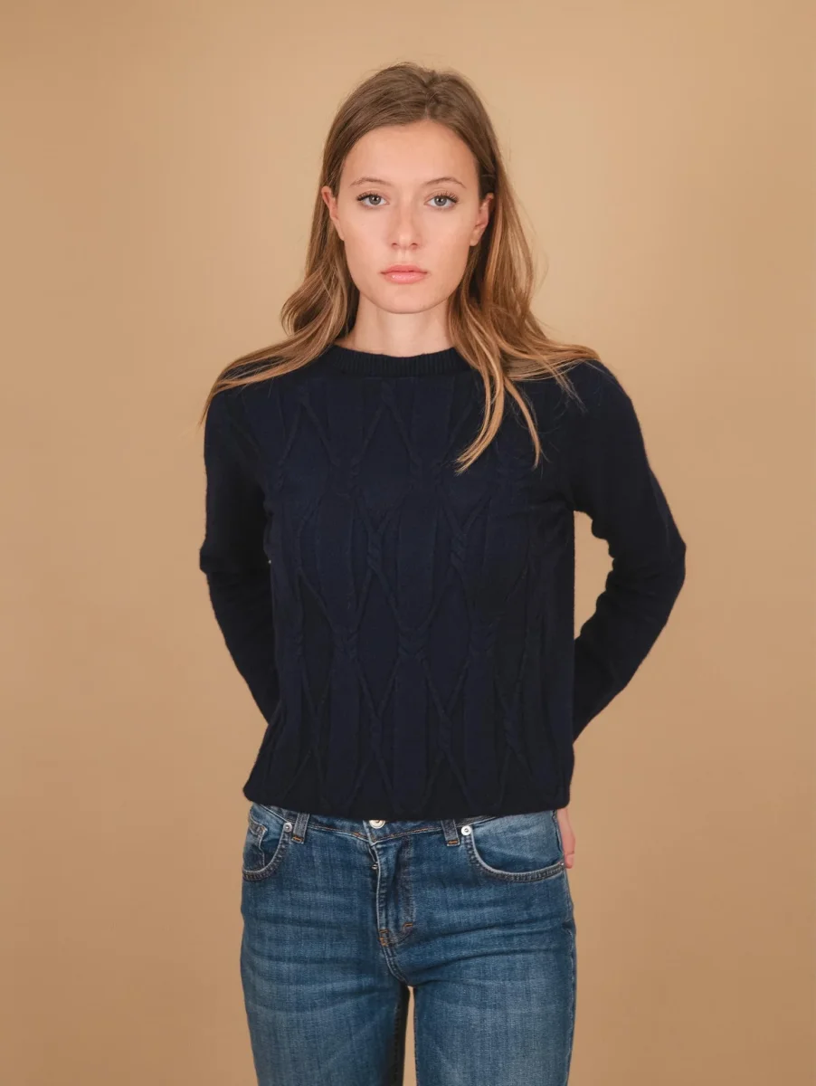 MAGLIA GIROCOLLO CON MAXI INTRECCIO FRONTALE BLU