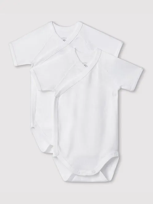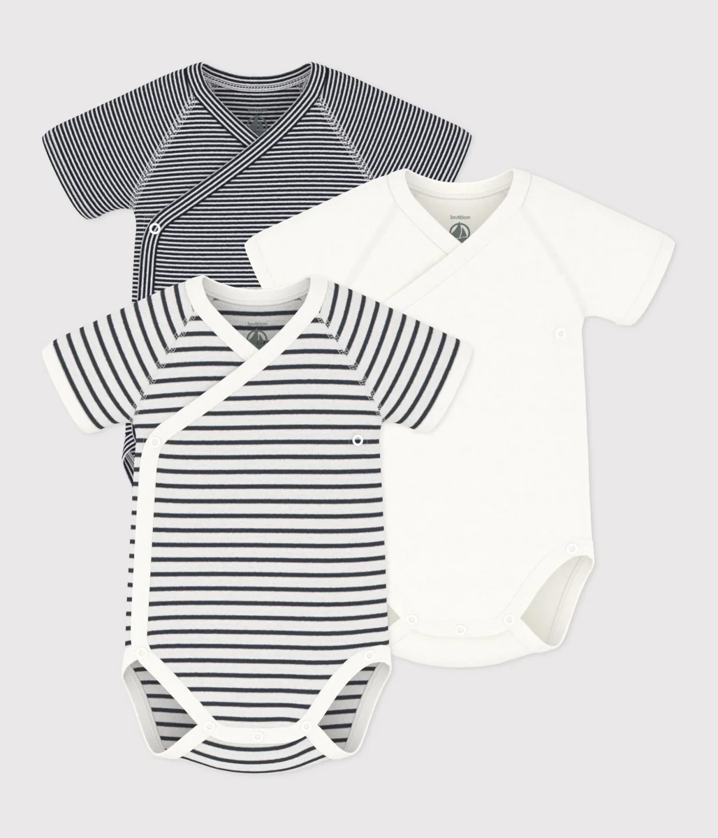 CONFEZIONE DA 3 BODY INCROCIATI A MANICHE CORTE, A RIGHE, IN COTONE, PER NEONATI