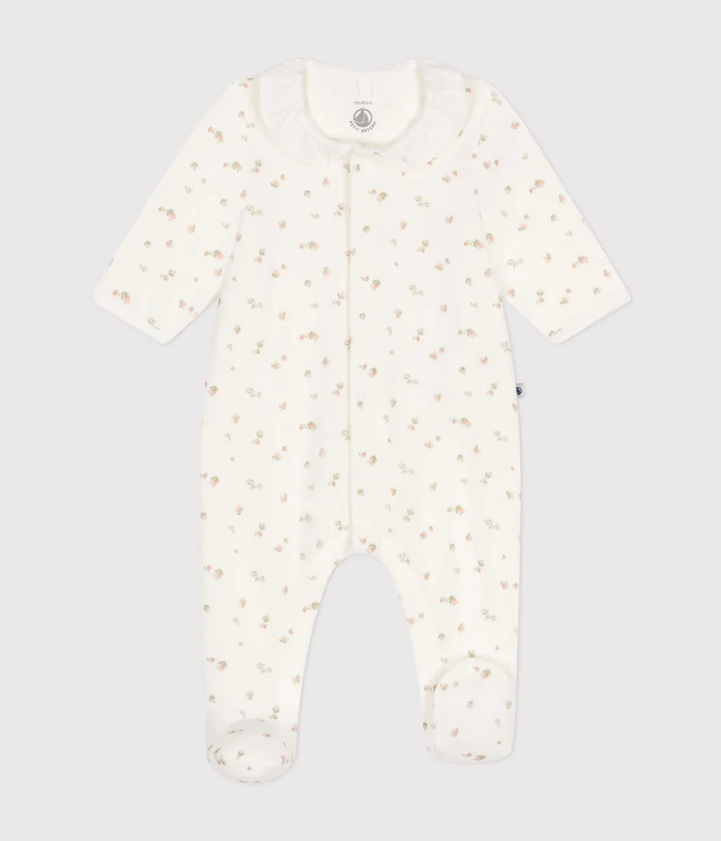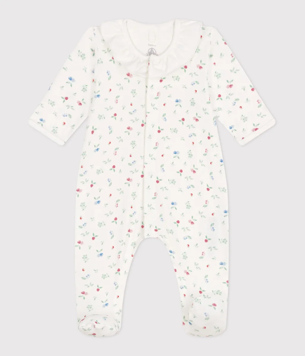 Tutina pigiama in cotone a fiori con colletto