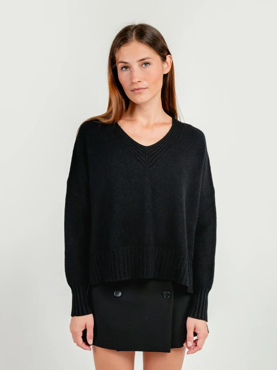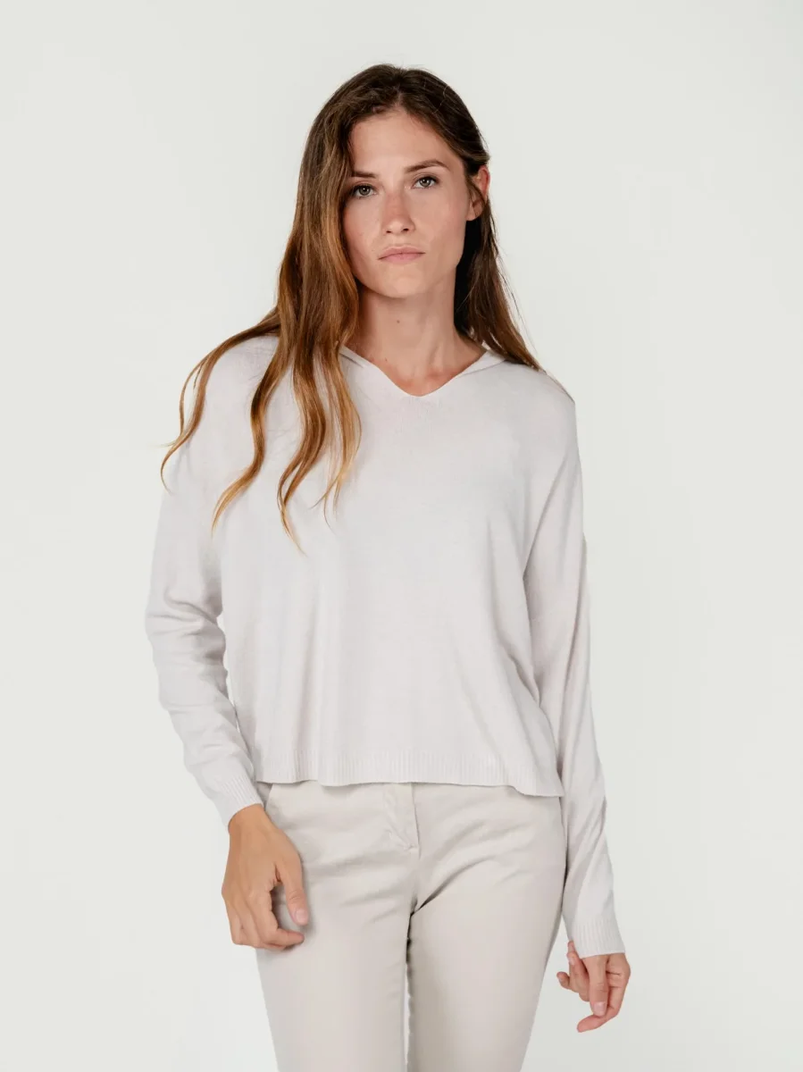 MAGLIA con SCOLLO a V in lana merino extra fine ecru