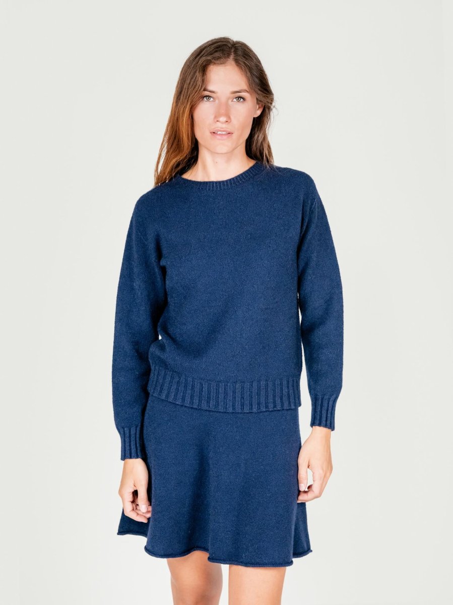 MAGLIA GIROCOLLO CON FONDO ASSIMETRICO BLU