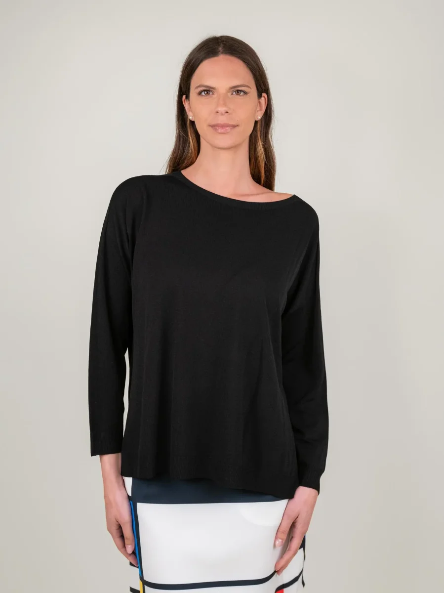 MAGLIA OVER NERA CON SCOLLO A BARCHETTA