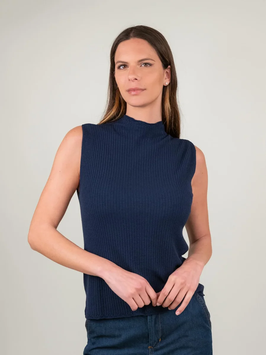 TOP SMANICATO CON COLLO LUPETTO BLU
