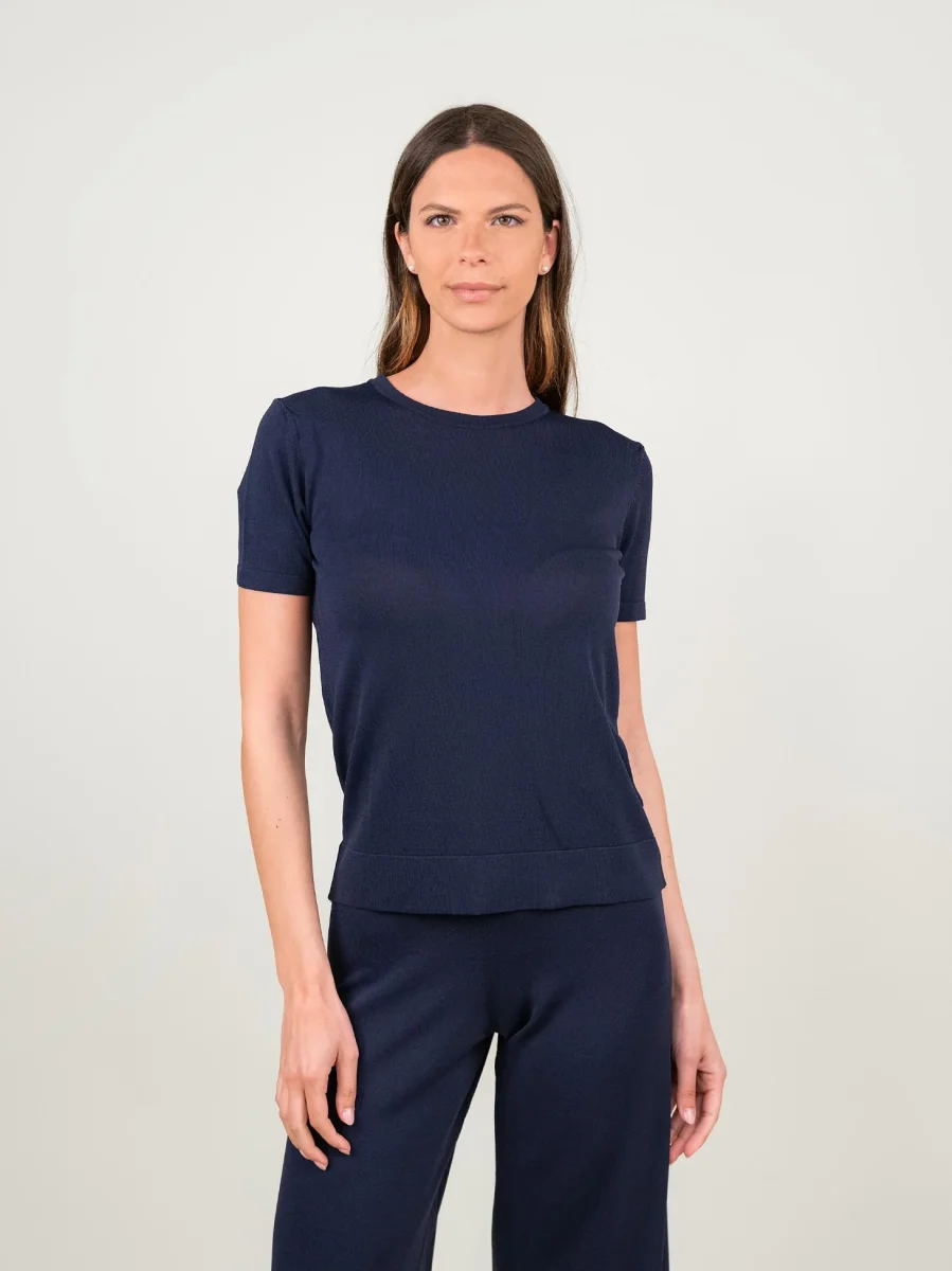 T-SHIRT A MANICA CORTA IN MAGLIA BLU
