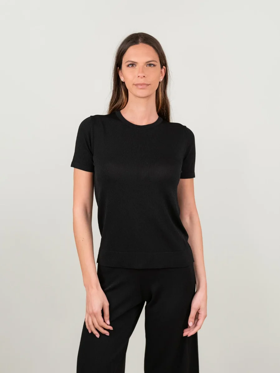 T-SHIRT A MANICA CORTA IN MAGLIA NERA