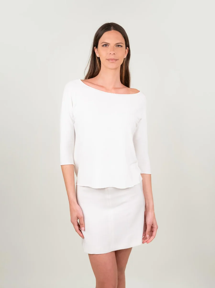 T-SHIRT CON MANICA A TRE QUARTI IN MAGLIA BIANCA