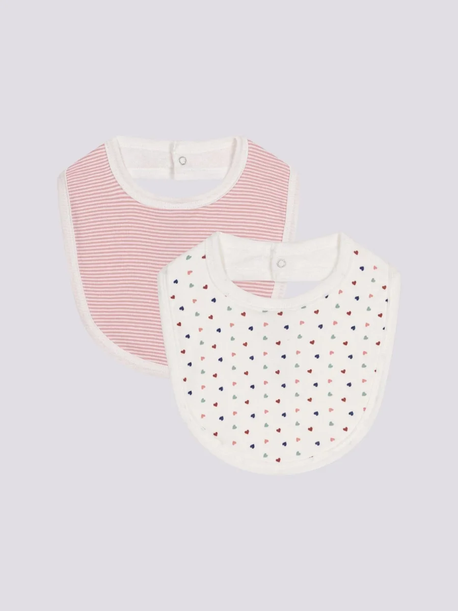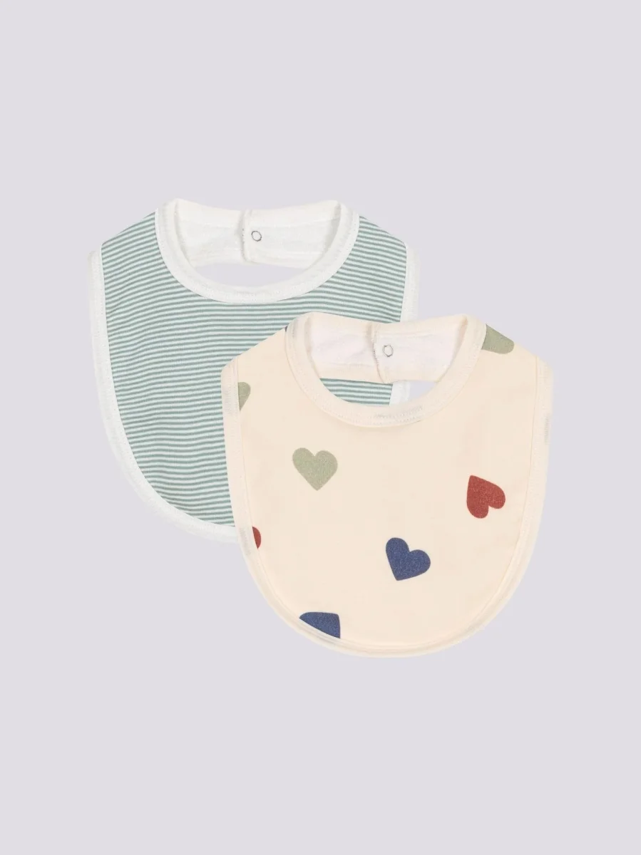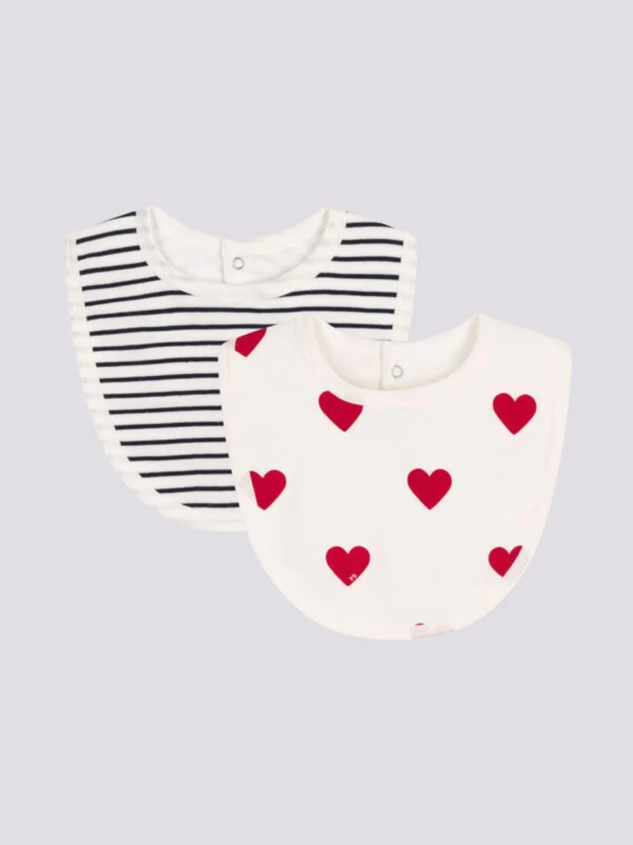 Confezione da due bavaglini righe e cuori