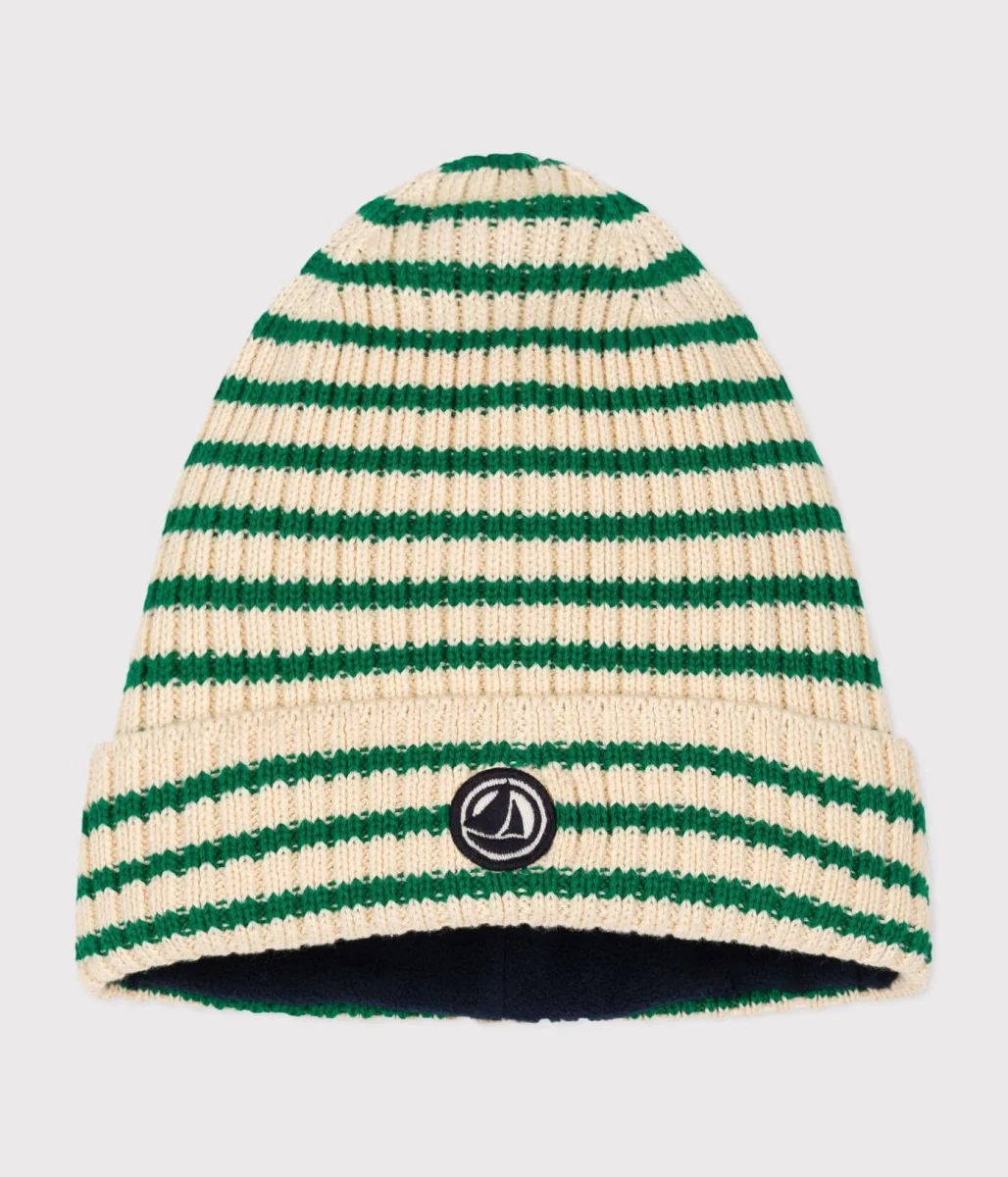 Cuffietta in maglia con fodera in pile a righe bambino