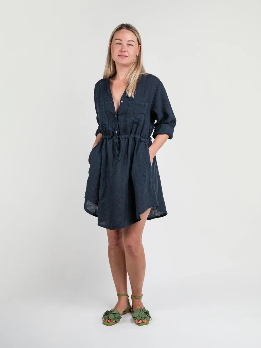 ABITO CORTO IN LINO CON MANICA A 3/4 BLU