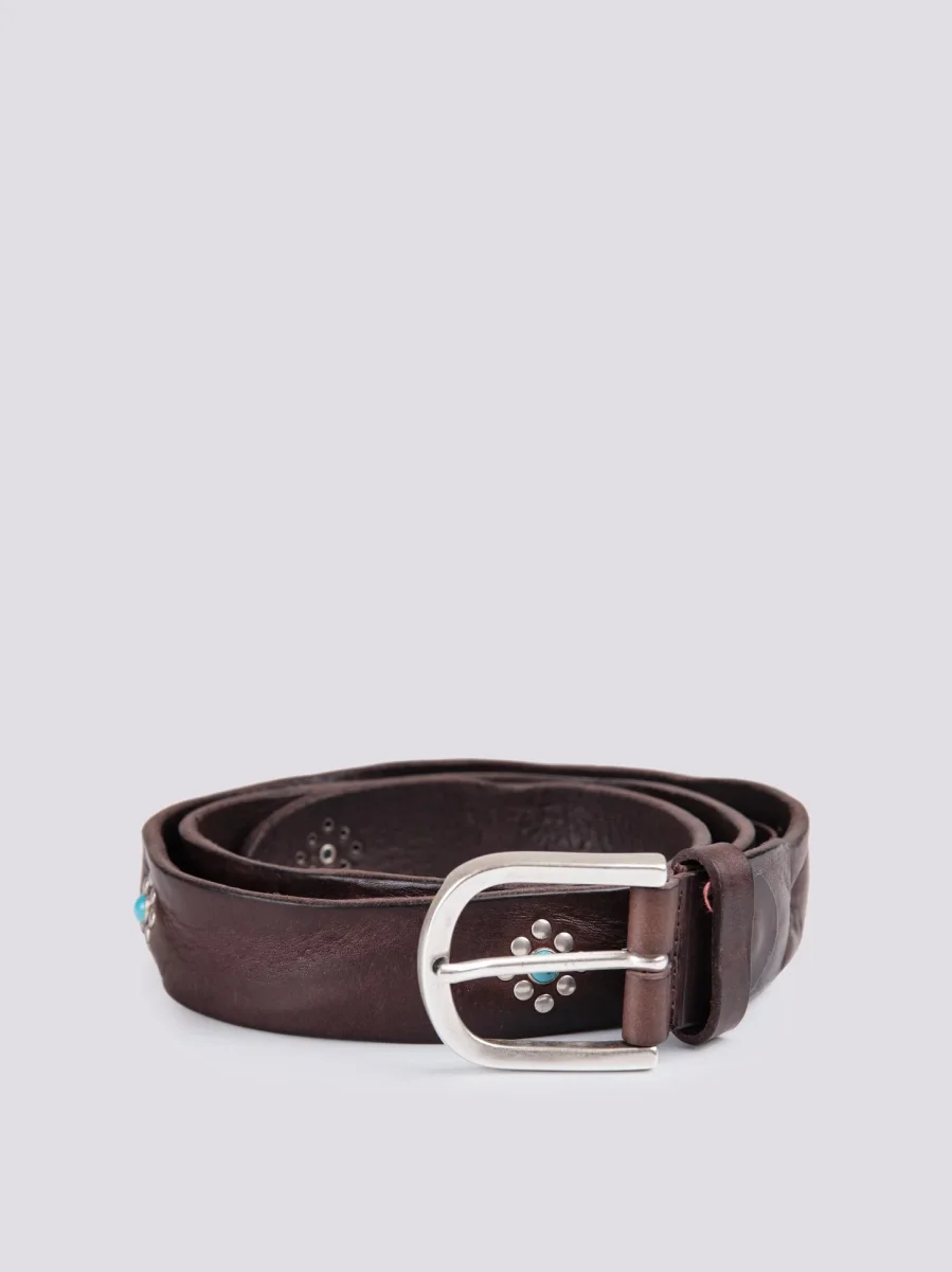 Cintura in pelle marrone effetto vintage con borchie