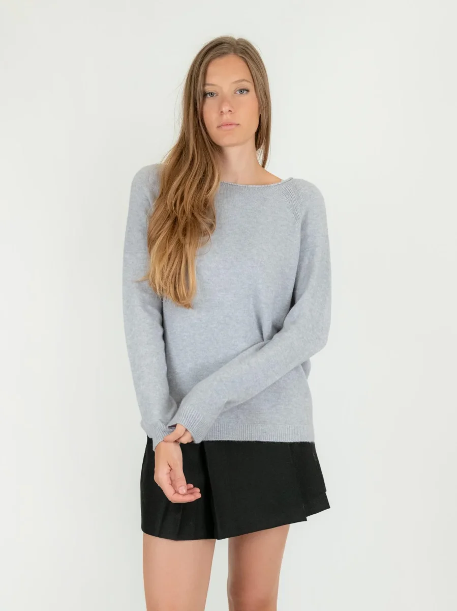 MAGLIA SCOLLO A BARCA GRIGIO PERLA