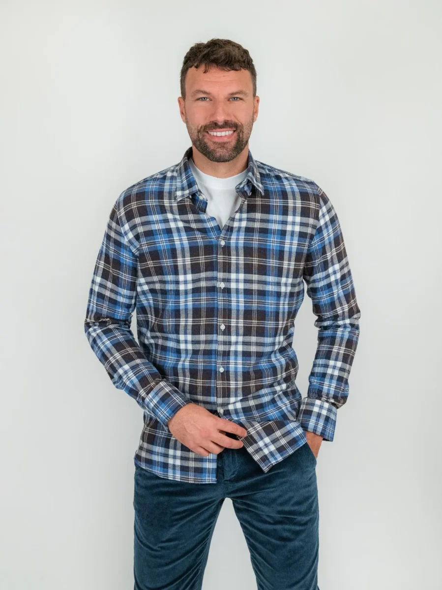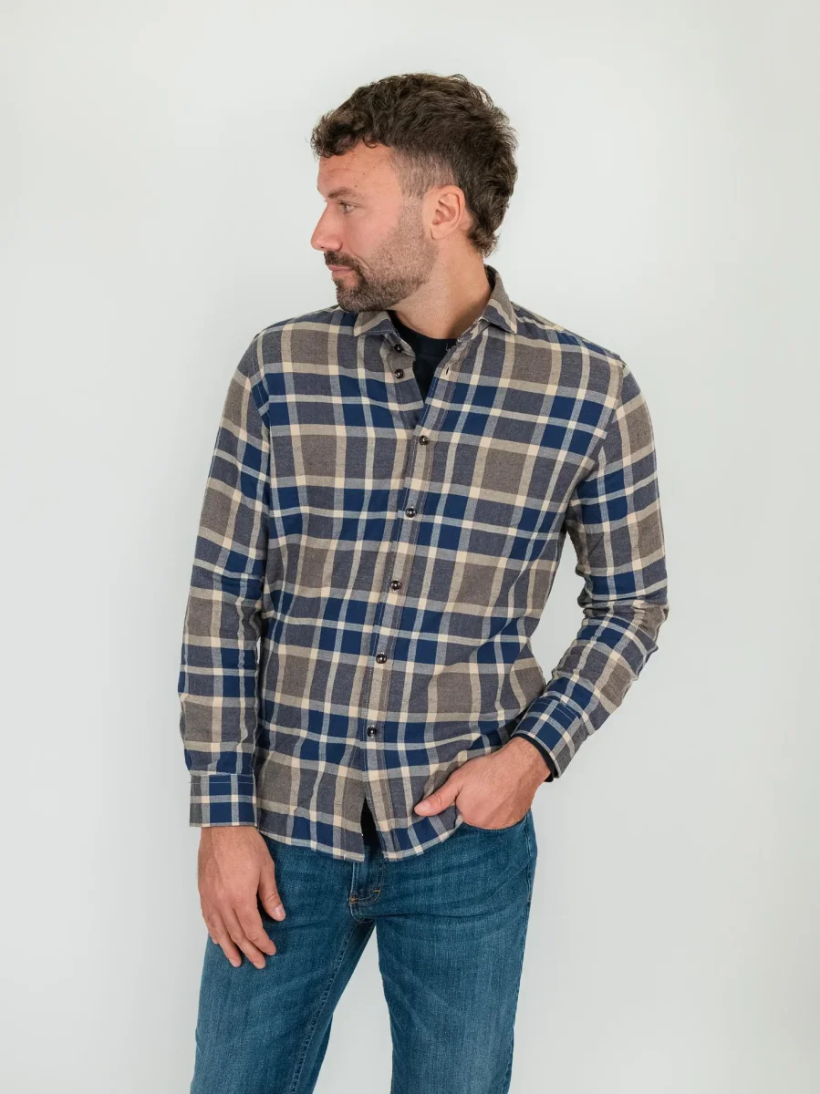 CAMICIA IN FLANELLA A QUADRI BLU BEIGE
