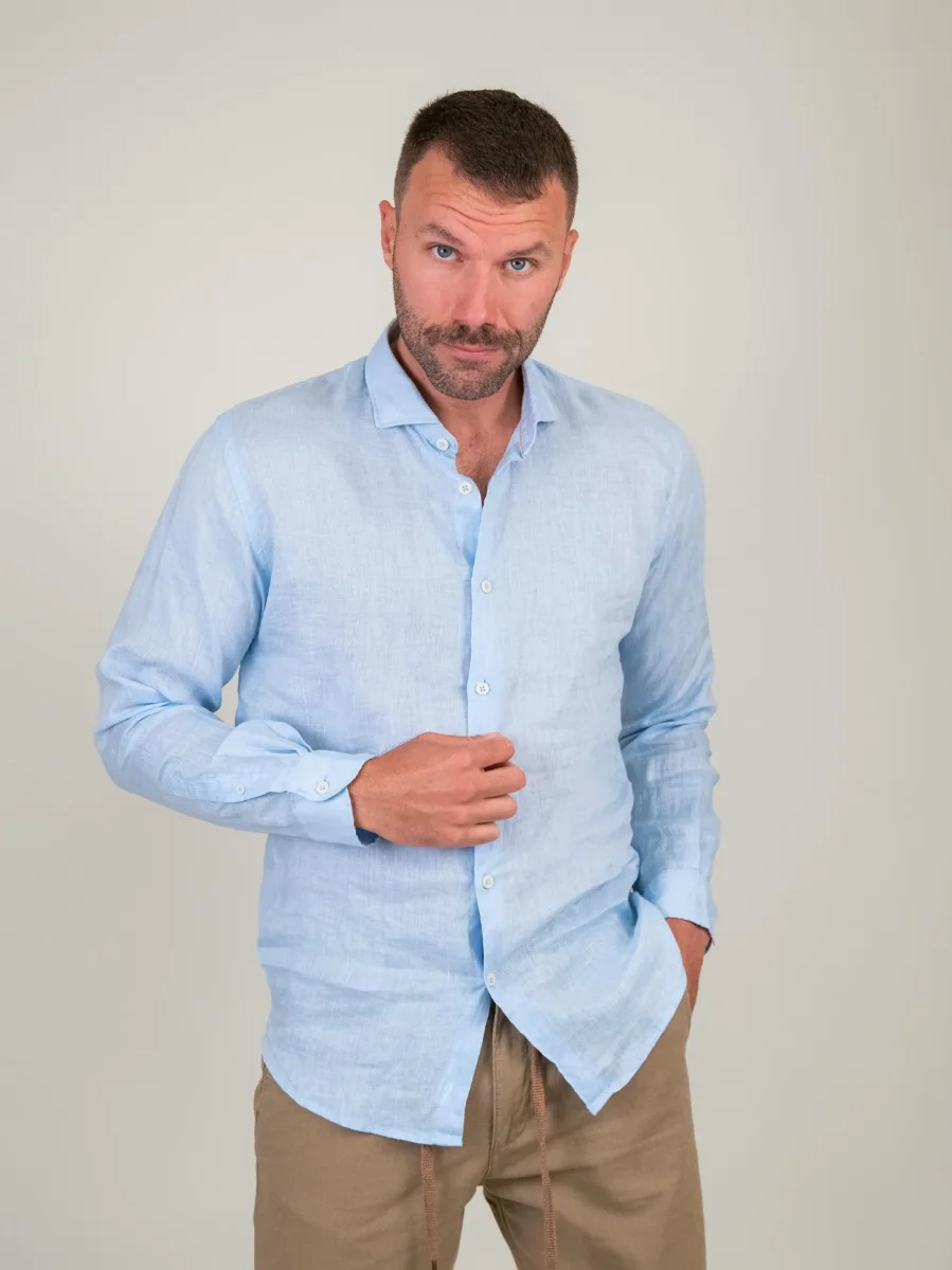 Camicia in lino azzurro chiaro