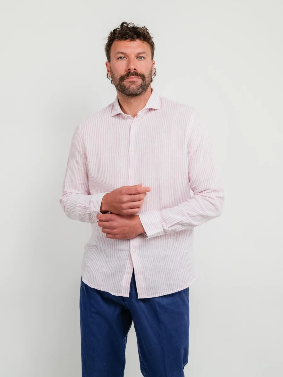 CAMICIA IN LINO E COTONE A RIGHE BIANCHE E ROSA
