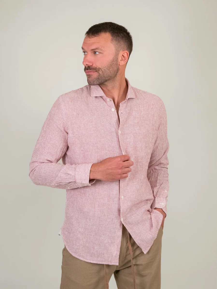 CAMICIA IN LINO E COTONE A RIGHINE BIANCHE E ROSSE