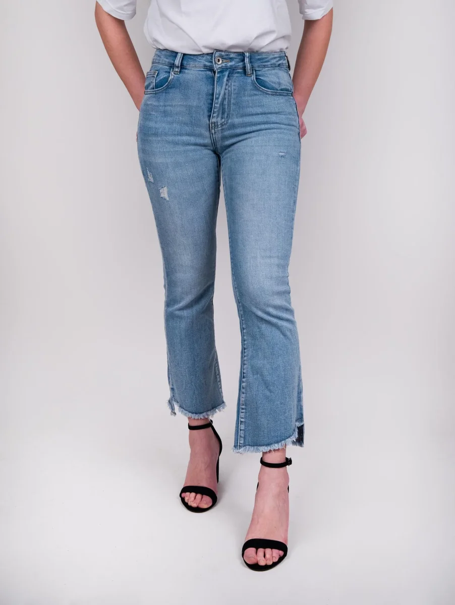 JEANS 5 TASCHE SFRANGIATO IN DENIM CHIARO